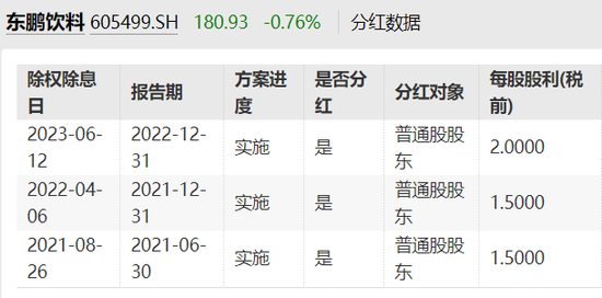 实际上,东鹏饮料对股东并不吝啬。