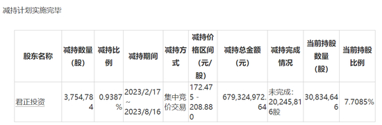 第二轮减持周期结束之后,君正投资紧接着提出第三轮减持计划。8月17日,东鹏饮料发布公告称,君正投资共减持公司股份375.48万股,再次套现6.79亿元。