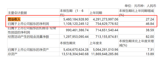 2023年上半年,东鹏饮料实现营收54.60亿元,同比增长27.24%;归母净利润11.08亿元,同比增长46.84%。