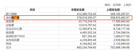 而在销售费用中,仅宣传推广费就有3.76亿元。也就是说,研发费用尚不及推广费的十分之一。