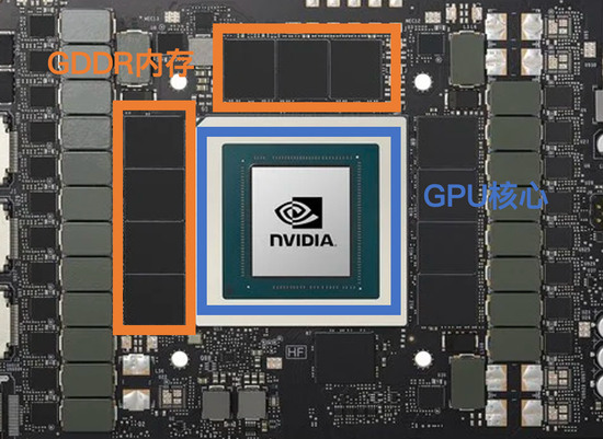 在消费级GPU产品中,内存芯片一般都封装在GPU核心的外围,通过PCB板之间的电路传递信号。