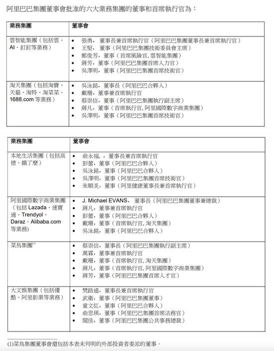 值得注意的是,算上吴泳铭刚刚兼任的云智能集团董事长兼CEO职务,蔡崇信、吴泳铭在除了大文娱之外的五大集团,或担任董事,或担任董事长,在这些重要业务的决策层中起到关键的影响力,也可以在将来独立融资上市的关键时刻,更好地影响资本市场。