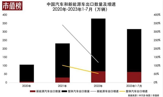 中国汽车出口正在快速增长,2022年,中国成为全球第一大新能源汽车出口国。2023年上半年,中国整体汽车出口量超过日本,成为全球第一。