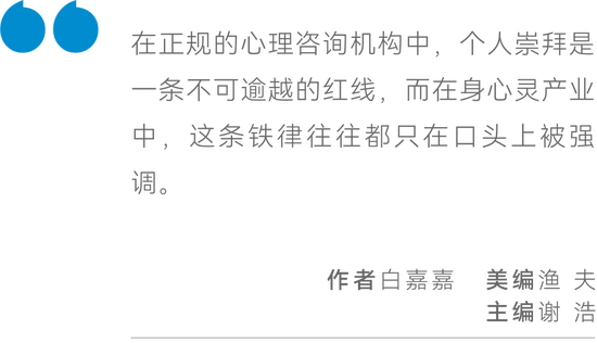 在正规的心理咨询机构中,个人崇拜是一条不可逾越的红线,它甚至禁止心理咨询师和客户在工作关系之外产生任何连接。一旦出现苗头,心理咨询师就会建议客户更换咨询师。因为个人崇拜全然无助于受访者形成独立、健康的个体意识。