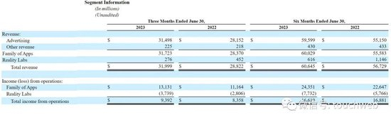 从财报看,Meta在2023年上半年来自Reality Labs的收入为6.16亿美元,较上年同期的11.46亿美元下降46%。