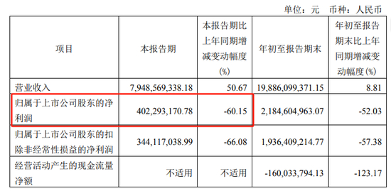 在此影响下,合盛硅业业绩连续下滑。2023年第三季度,合盛硅业仅盈利4.02亿元,同比下滑60.15%。