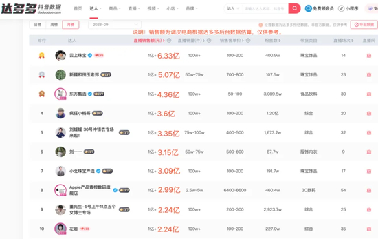 据达多多9月抖音主播带货榜,前十名被云上珠宝、新疆和田玉老郑、小北珠宝严选、董先生、左岩等珠宝主播牢牢占据,销售额占比高达52%。
