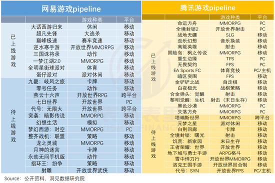 这反映在供给上,可以看到,近两年其他玩家,以网易为例,偏向移动端更多,且品类上更偏向轻量级、垂类玩法;而腾讯PC/主机端游戏储备相对更多,整体题材偏向类似3A的重磅游戏发布。