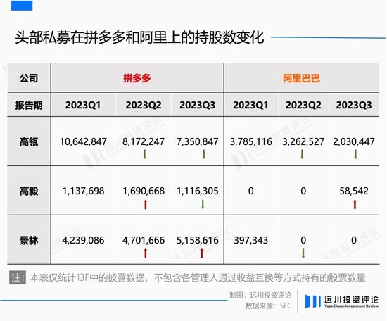 从头部私募年初披露的美股头寸来看,高瓴、高毅和景林均不同程度的持有拼多多,其中拼多多全年位列景林在美股13F文件中的第一大持仓。但随着行情演进至三季度,高瓴和高毅都有不同程度的减仓,而景林则继续增持。