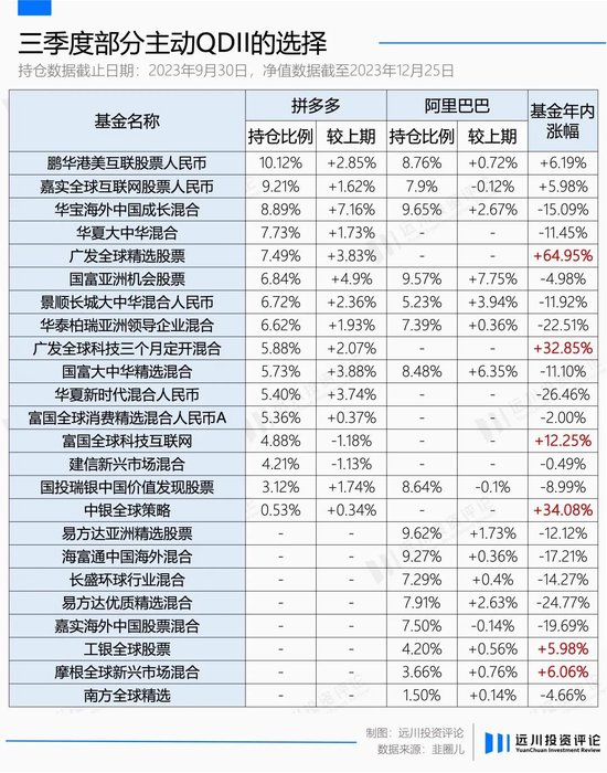 回到拼多多与阿里的选择上,随着市场环境发生变化,以及两家公司的经营情况和财报数据的持续更新,在两者之间重新进行动态调整的基金经理也不在少数。