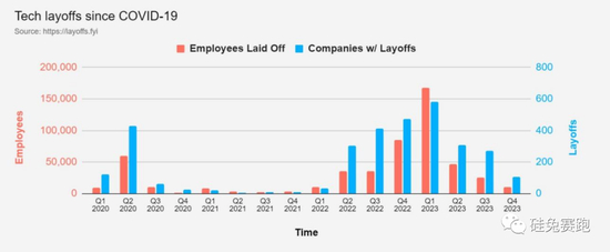 根据Layoffs.fyi统计,在疫情爆发前的两年里,几乎没有裁员的情况。