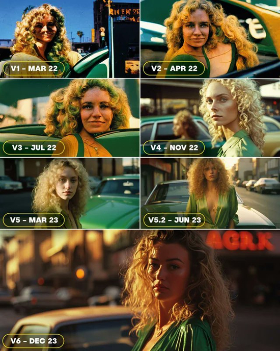 ▲图:网友制作的V1-V6的生成效果对比图,来源X
