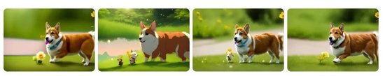 然后以这四张图片为基础,用提示词“一只在春天里奔跑的小狗。”生成视频。