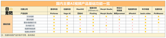 所以从使用门槛上综合考虑,PixVerse对用户要更加友好,在这一板块相对更有优势。其他产品在使用门槛上则相对平均。