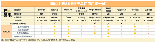 「自象限」梳理绘制出了国内视频大模型公司及产品的基本情况。