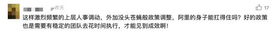 眼下,面对变化急剧的阿里,也有人提出质疑:“这样激烈频繁的上层人事调动,外加没头苍蝇般政策调整,阿里的身子能扛得住吗?”