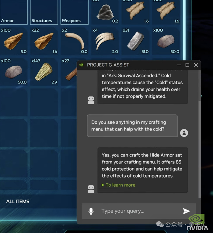 玩家这边呢,还可以通过Project G-Assist找到最好的武器,也可以查询到最牛的攻略,然后就可以或制作武器材料,或一路杀怪通关。