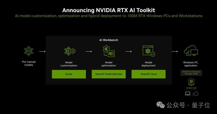 还推出了RTX AI Toolkit,一个工具和SDK集合,帮助Windows开发者定制优化本地部署模型。