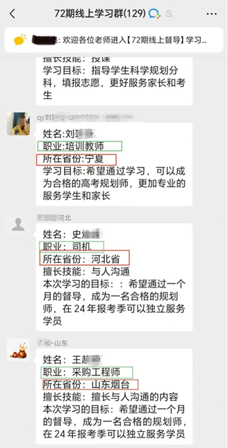某高报师学习群的学员情况