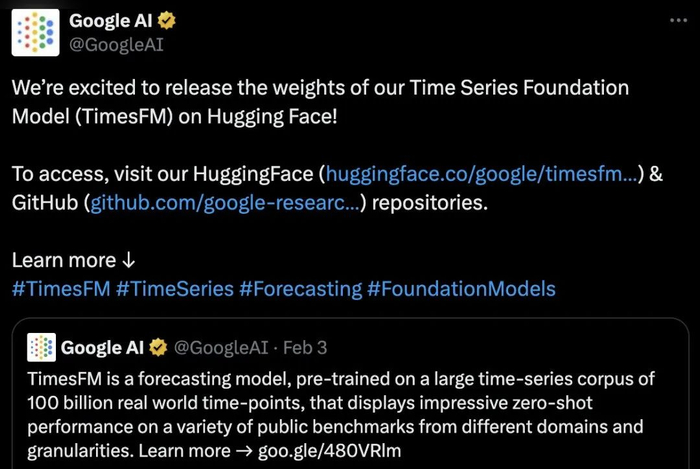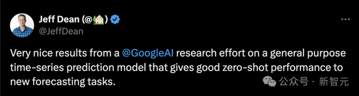DeepMind首席科学家Jeff Dean转发了官方推特,为TimesFM的研究成果背书。