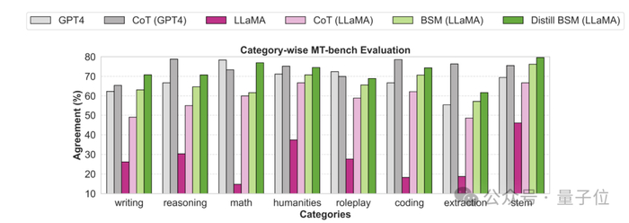 同时针对MT-Bench不同的子类任务,作者也分别分析了各种方法的人类一致性。