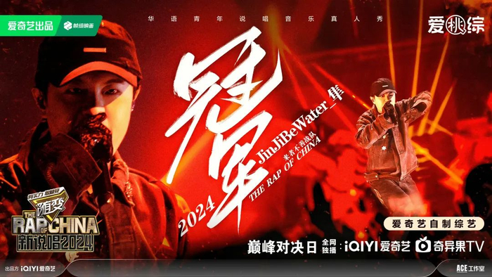 7月21日,《新说唱2024》总决赛播出,巅峰对决冠亚军之争在JinJiBeWater_隼和新秀之间展开,最终,JinJiBeWater_隼把《街头智慧》带到决赛舞台,击败了新秀的《夜之城》,拿下了冠军头衔,加冕今年的王座。