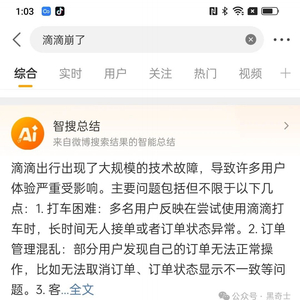 目前滴滴官方账号未证实或证伪该消息,也未公开此次故障影响的地域、时间和软件版本,目前在微博上有数十条有关此次崩溃的用户反馈。“滴滴崩了”词条曾短暂冲上微博热搜。