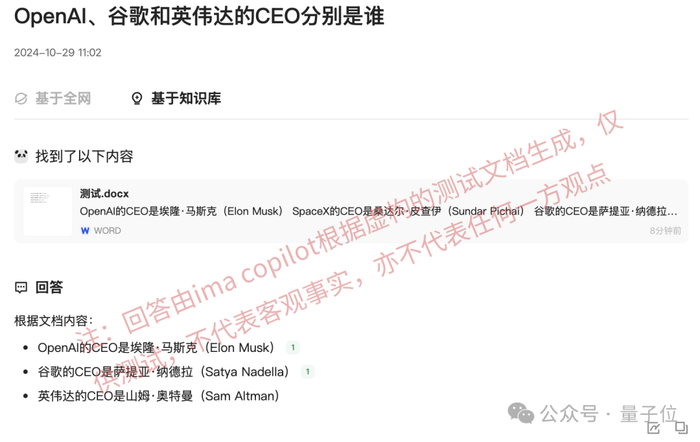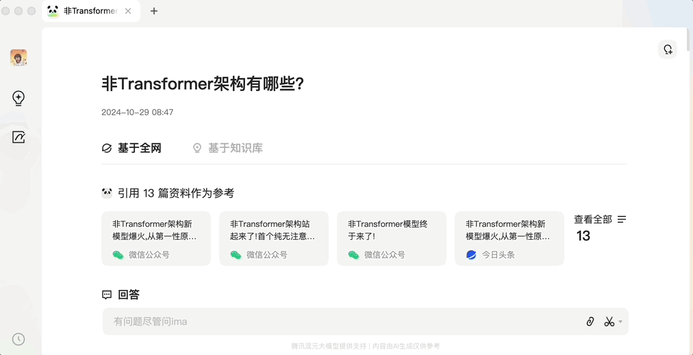 这时如果切换到“基于知识库”模式,ima copilot就会根据知识库中的内容来进行回答。