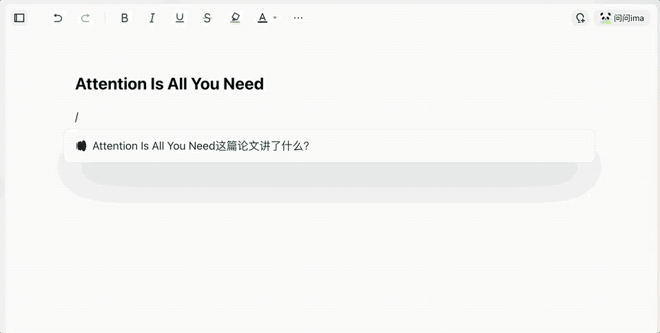 另外,不选中任何词,输入斜杠“/”也能唤出AI写作功能。