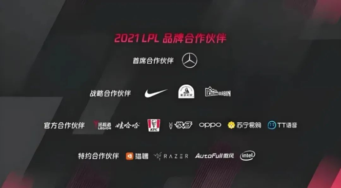 在2021年,LPL职业联赛的赞助商多达15家之多,还详细做了区分,从上往下分别是:首席合作伙伴、战略合作伙伴、官方合作伙伴、特约合作伙伴。
