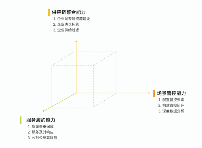 传统服务商偏向于规则制定和内部管控,而企业消费管理的新范式则要打通全链条,特别是基于C端互联网打造全场景供应链资源体系。因此,白皮书中认为服务商需要具备三大核心能力: