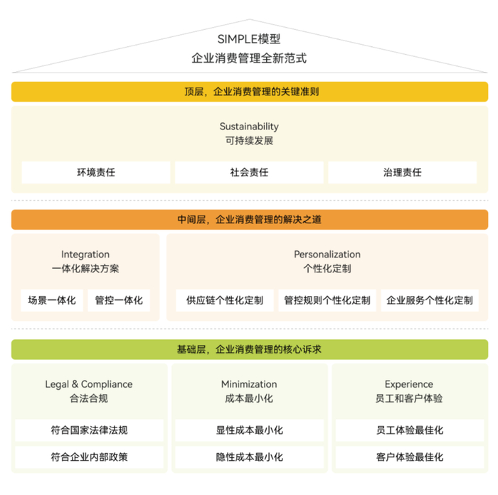 SIMPLE模型的推出,是顺应时代的变化,首次确立了企业消费管理的框架,明确了管理的层次和体系,帮助企业实现资源的高效配置与运营效率的飞跃。而这个框架,也将成为未来企业选择消费管理系统的标准,当企业明确自己的目标时,这个模型可以作为帮助选择服务商的标准。