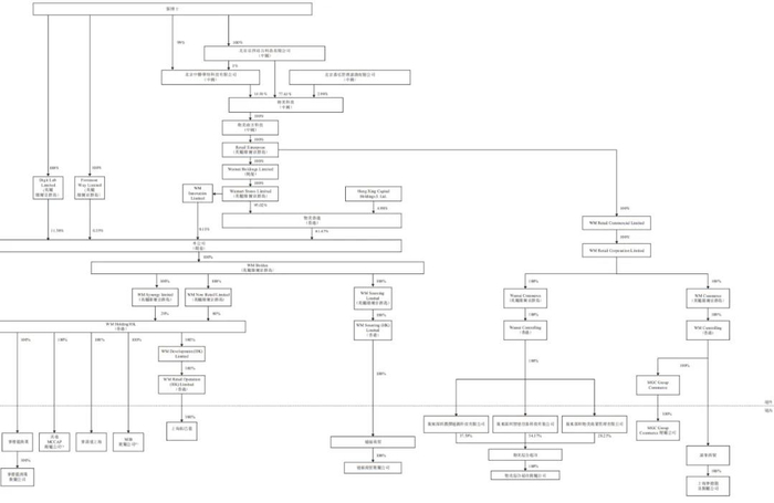 IPO前,张文中博士透过其控制的若干中间实体(即北京京西硅谷科技有限公司、北京中胜华特科技有限公司、物美科技、物美南方科技、RetailEnterprise、Wumei Holdings Limited、Wumart Stores Limited、Wumart HK及WM Innovation Limited)于我们的已发行股本中拥有约61.58%的权益。