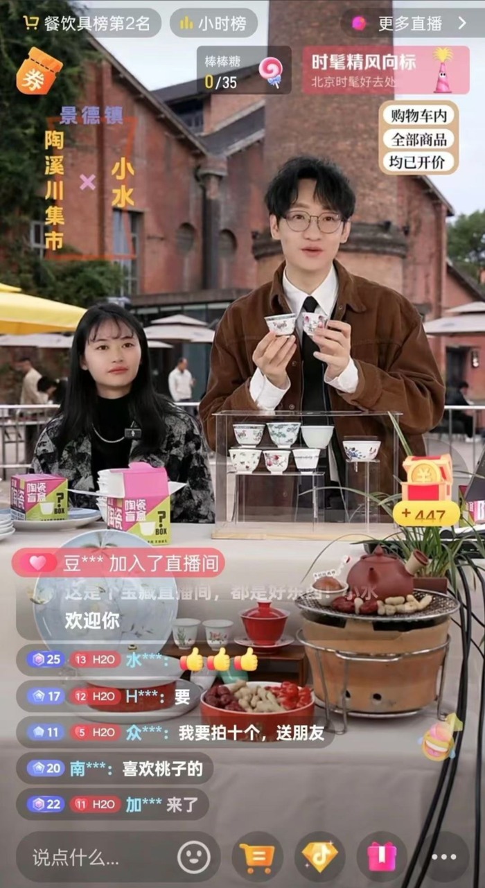 作为“开荒者”,销售成绩平平,只卖了不到300万。但开荒的价值在于让当地商家看到了新的机遇和希望,开始扭转思路,纷纷向@小水学习直播的运营经验。商家的积极参与,也为后续主播来到景德镇打下了基础,在@小水之后,东⽅甄选、交个朋友等头部直播间去到景德镇,都取得了不错的成绩。