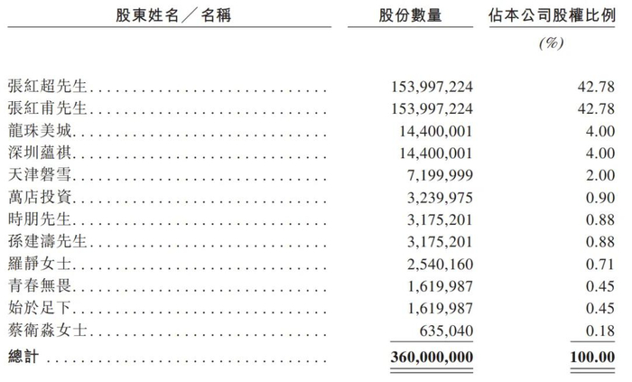 龙珠美城、高瓴蕴祺分别持股为4%,龙珠美城为美团旗下基金。天津磐雪持股为2%,万店投资持股为0.9%。