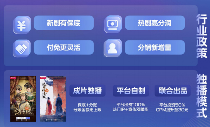 针对在百度APP独播的成片,平台保持保底+分账的模式。基础保底收入提供了很强的“托底安全感”;CPM阶梯累加的分账模式,让优质内容可获得更高的收益空间,出现爆款其收益也无天花板限制。而且平台保证了分账覆盖短剧全生命周期流量,短剧可最大化释放长尾价值。