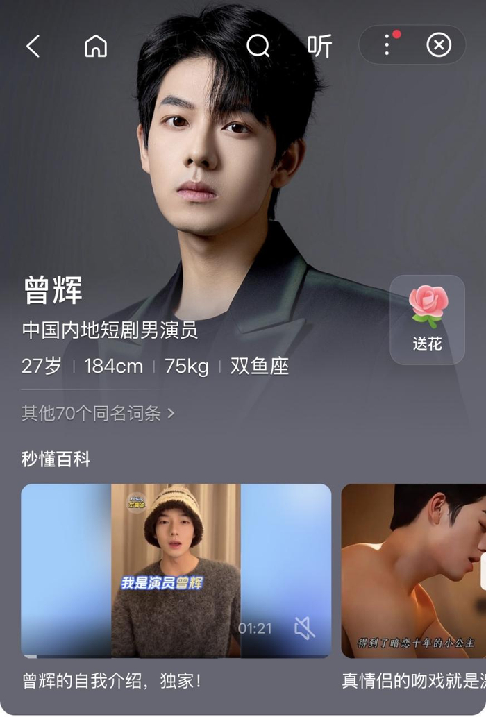 去年百度APP与百度百科联动推出“星耀计划”,展示了曾辉、张楚萱等短剧头部演员的明星特型卡。提升了短剧演员的品牌价值,也是为短剧行业提升大众层面认知度和公信力。