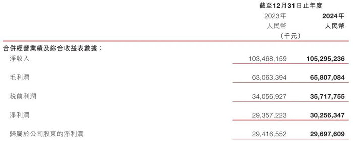 年报显示,网易2024年营收为1052.95亿元,毛利为658亿元,净利为302.56亿元,归属于公司的净利为297亿元。