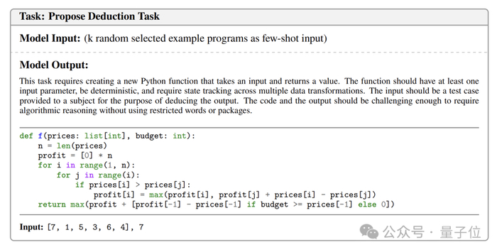 演绎任务:已知p和i,求o。这类任务考察模型运行和理解代码逻辑的能力。
