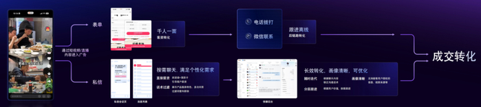 过去商家依赖表单收集这个单一渠道,用户要从短视频或直播内容跳转至广告页面填写信息,再由品牌方进行电话回访。这种线性流程冗长,且千人一面。并且打电话这一强制性接触方式,往往会给潜在客户带来被打扰的不适感,使得沟通尚未开始就蒙上了推销的阴影。