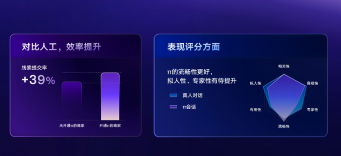 在过去一年,π已帮助众多商家实现了服务升级。快手磁力引擎AIGC产品业务负责人刘路在大会上表示,π的消耗峰值达到了330万,回复率增长了48.4%,留资率也增长了18.5%。如今,π还在持续进化——模型接入DeepSeek,提升上下文理解能力,保持了更多历史对话;架构方面,升级更多通用Agent协同,支持多轮追问及潜在客户识别。