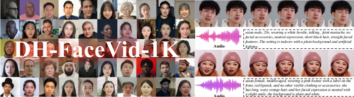 一篇是《DH-FaceVid-1K: A Large-Scale High-Quality Dataset for Face Video Generation》,提出业界首个大规模高质量人脸视频数据集DH-FaceVid-1K,容量大,多肤色,可以用于训练多模态数字人脸视频生成基座大模型。
