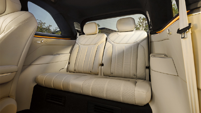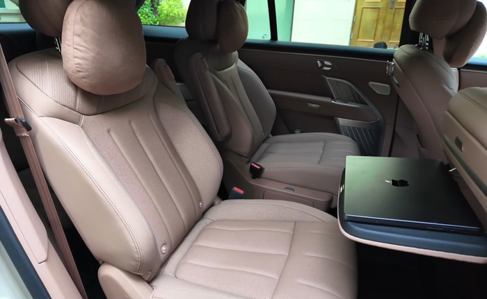 往后来到二排,右侧是零重力座椅,前面还有一个小桌板。