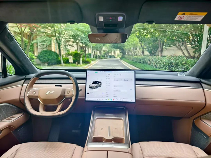 打开电吸门,登上电动踏板,来到车内,会发现前排和L60差别不大,主驾是35英寸AR-HUD,旁边是17英寸中控屏,3K清晰度。副驾驶前方还有一个手套箱。