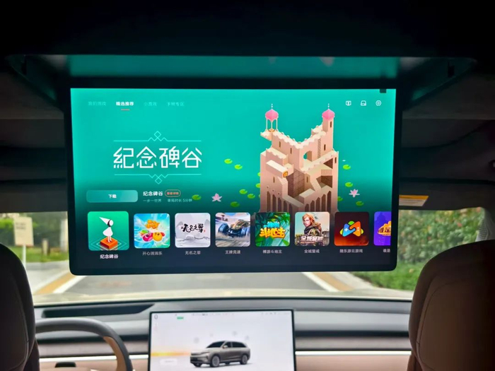 可用来调节上方17.3英寸的吸顶屏,尺寸和前排屏幕一样大,但是比例不同,更适合后排用户观看。