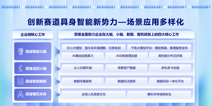 具体来说,它能提供从底层自研昆仑芯片/百舸算力管理平台,到中层文心大模型/千帆平台,再到行业赛道的解决方案。