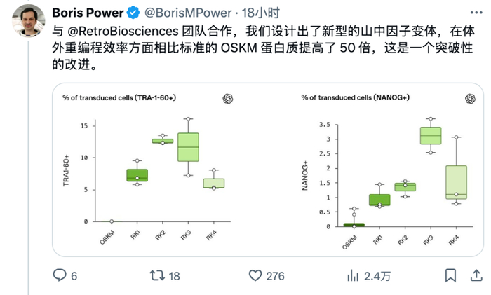 刚刚,OpenAI宣布,他们和Retro Biosciences的合作已成功利用GPT‑4b micro设计出了山中因子的「新颖且显著优化」的变体。