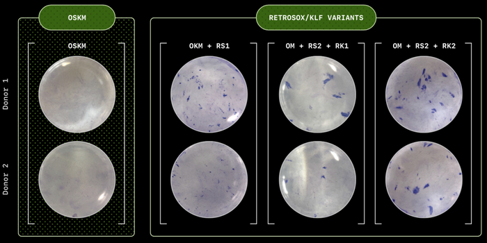 此外,研究团队在第10天通过碱性磷酸酶(AP)染色对RetroSOX和RetroKLF变体进行了验证。