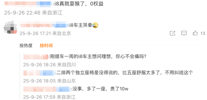 i6火到什么程度?让之前的i8车主直呼“背刺”,在理想各种官方账号下质问: