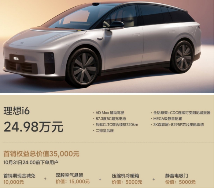 理想在一系列成本控制手段下,把i6售价压到了25万以内。